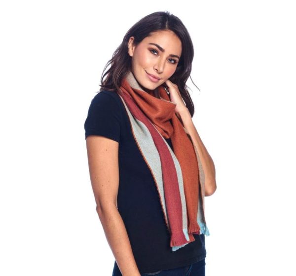 Nothing beats the color of fall when it comes to evoking feelings of warmth and comfort. Now you can capture and wear that cozy sensation all year long with the Autumn reversible alpaca scarf. Featuring a beautiful mix of a rich orange hue and a sophisticated shade of rust, it will immediately make you think of falling leaves, pumpkin pies, and cuddles by the fire. Made of our signature blend of alpaca fiber, you’ll experience the same comfort and care, courtesy of its impeccable warmth and softness. Material: 35% Baby Alpaca / 35% Super Fine Alpaca / 30% Acrylic Size: 11″ x 78″