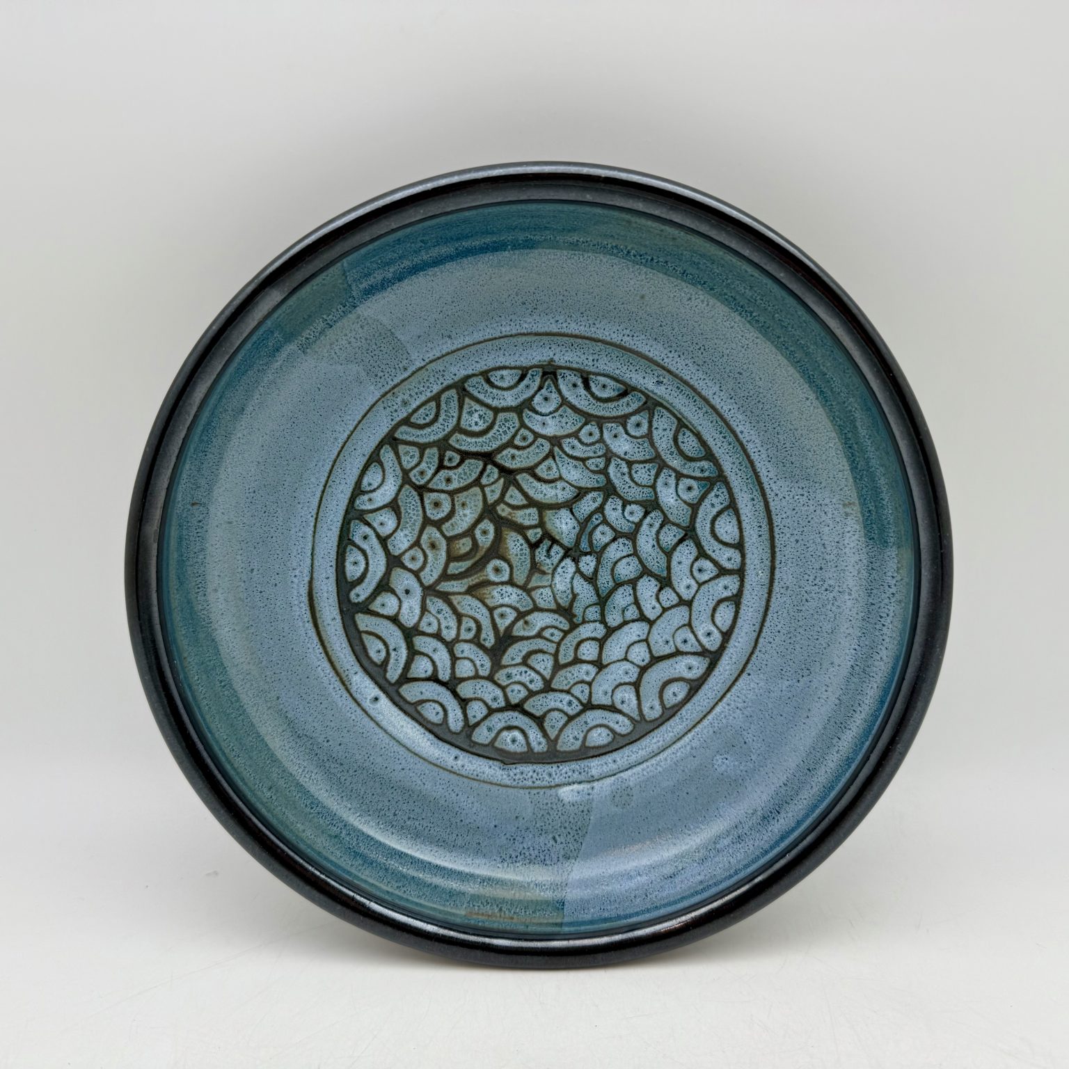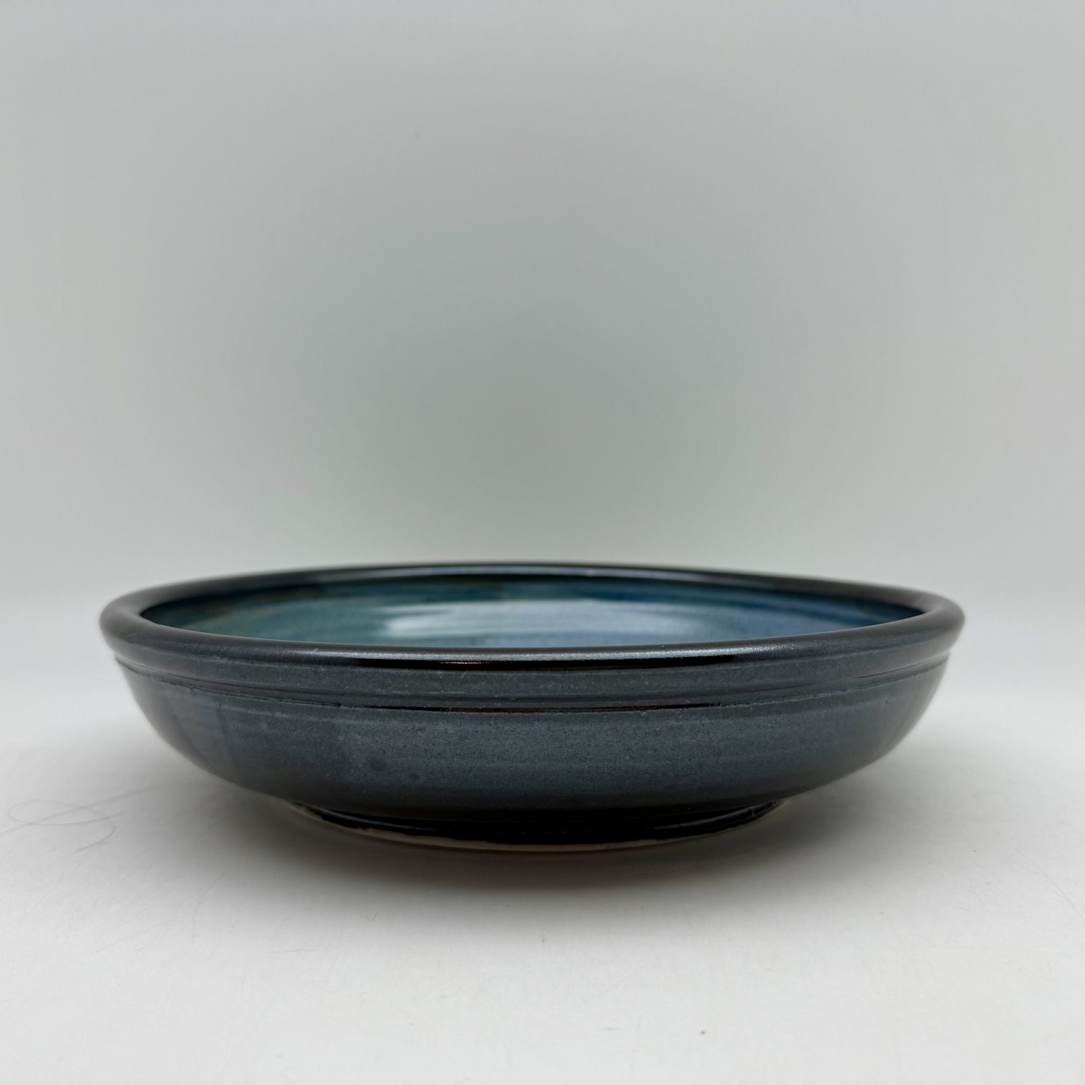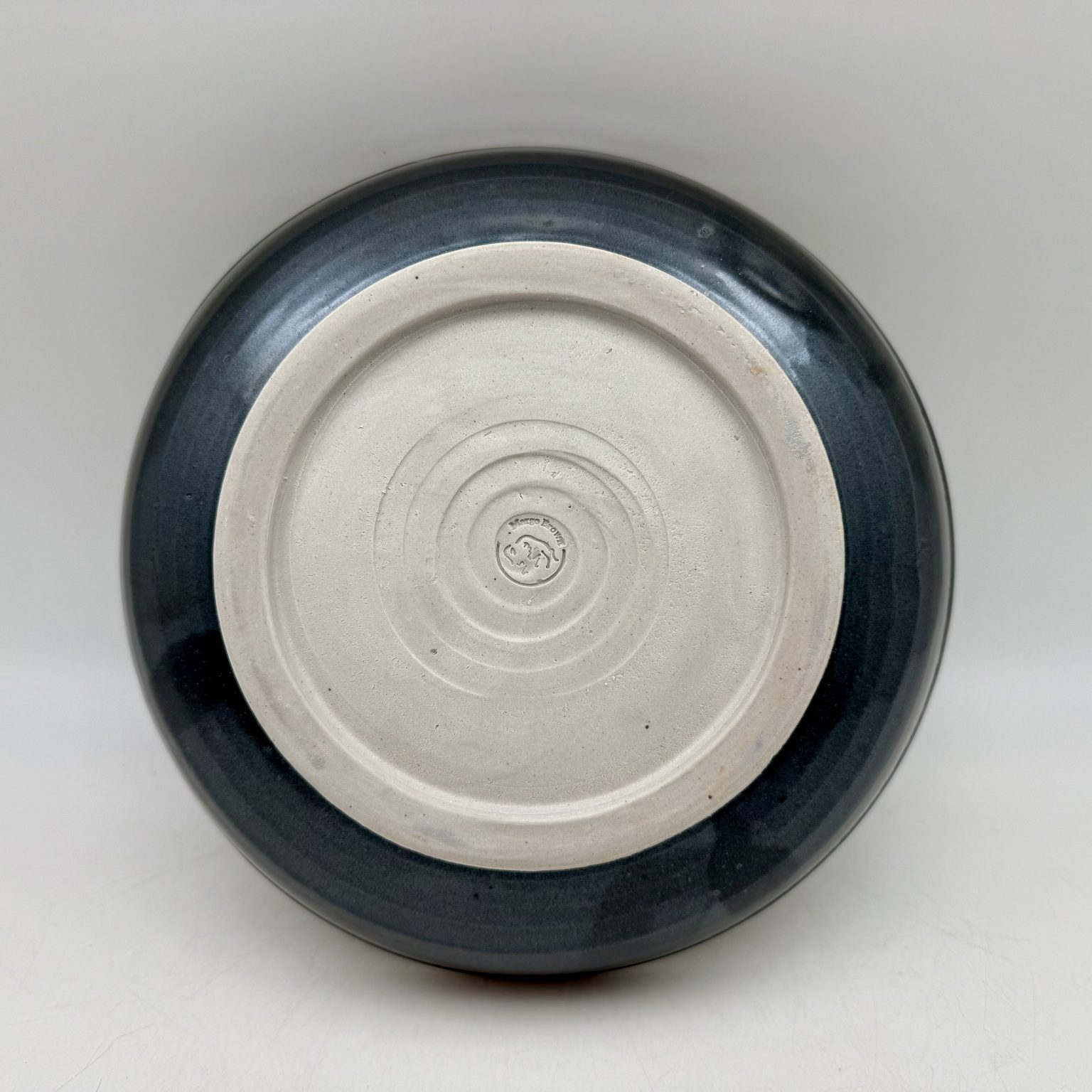 This large, porcelain dish was hand-thrown by Margo Brown in Buffalo, Wyoming. Height: 2.25″  Diameter: 10″ Color: Cobalt, Black Dishwasher safe.
