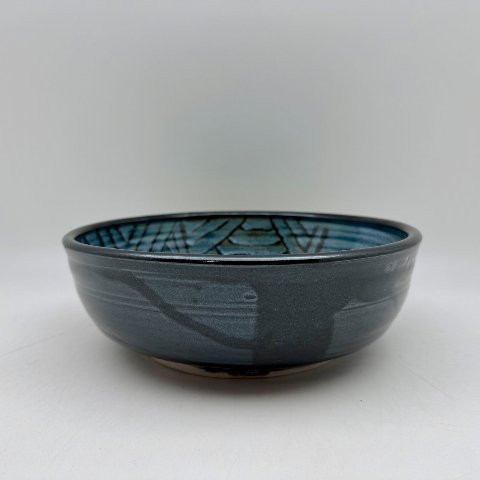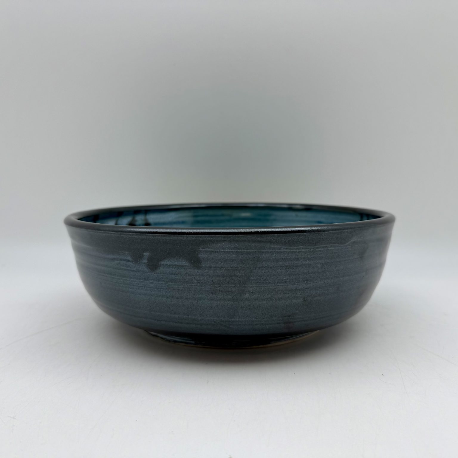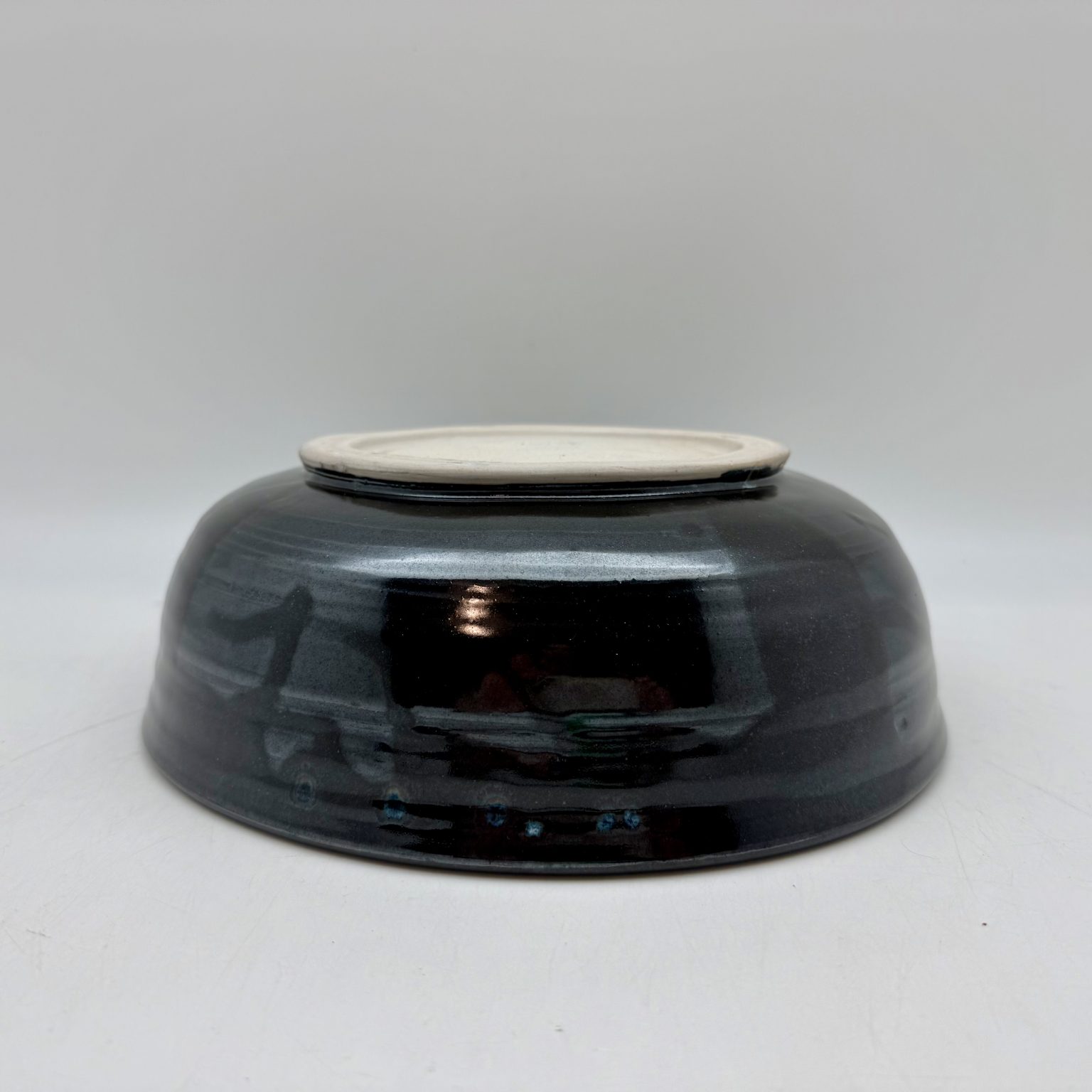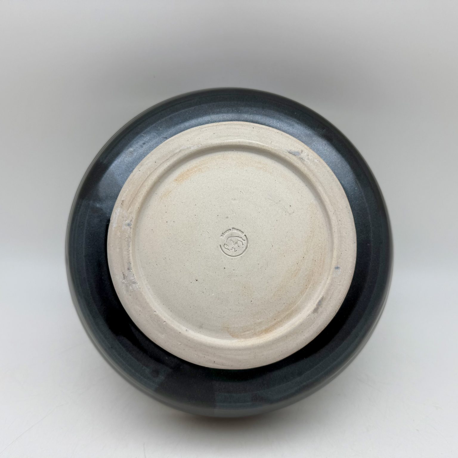 This large, porcelain bowl was hand-thrown by Margo Brown in Buffalo, Wyoming. Height: 3.5″  Diameter: 10″ Color: Cobalt, Black Dishwasher safe.