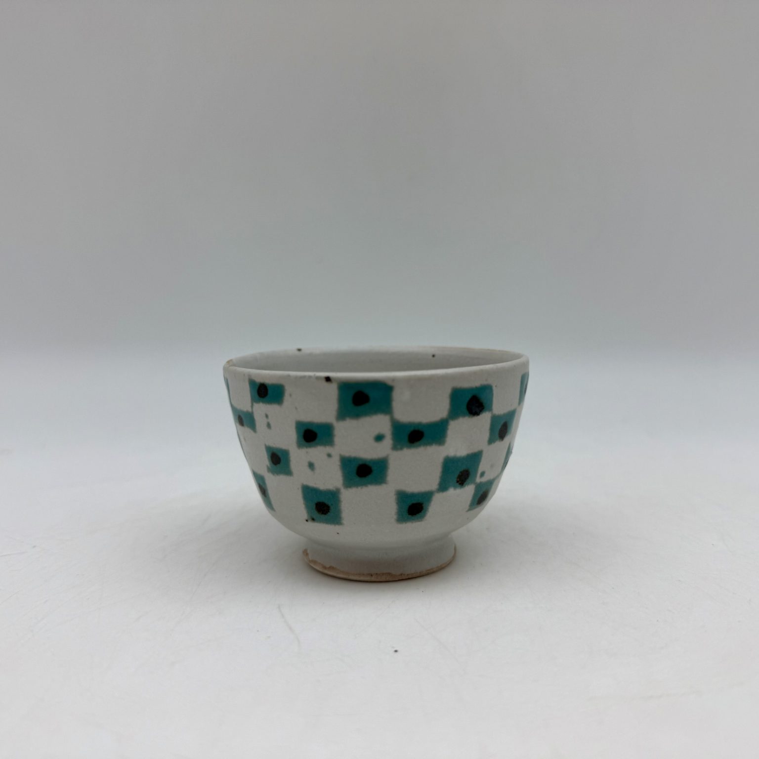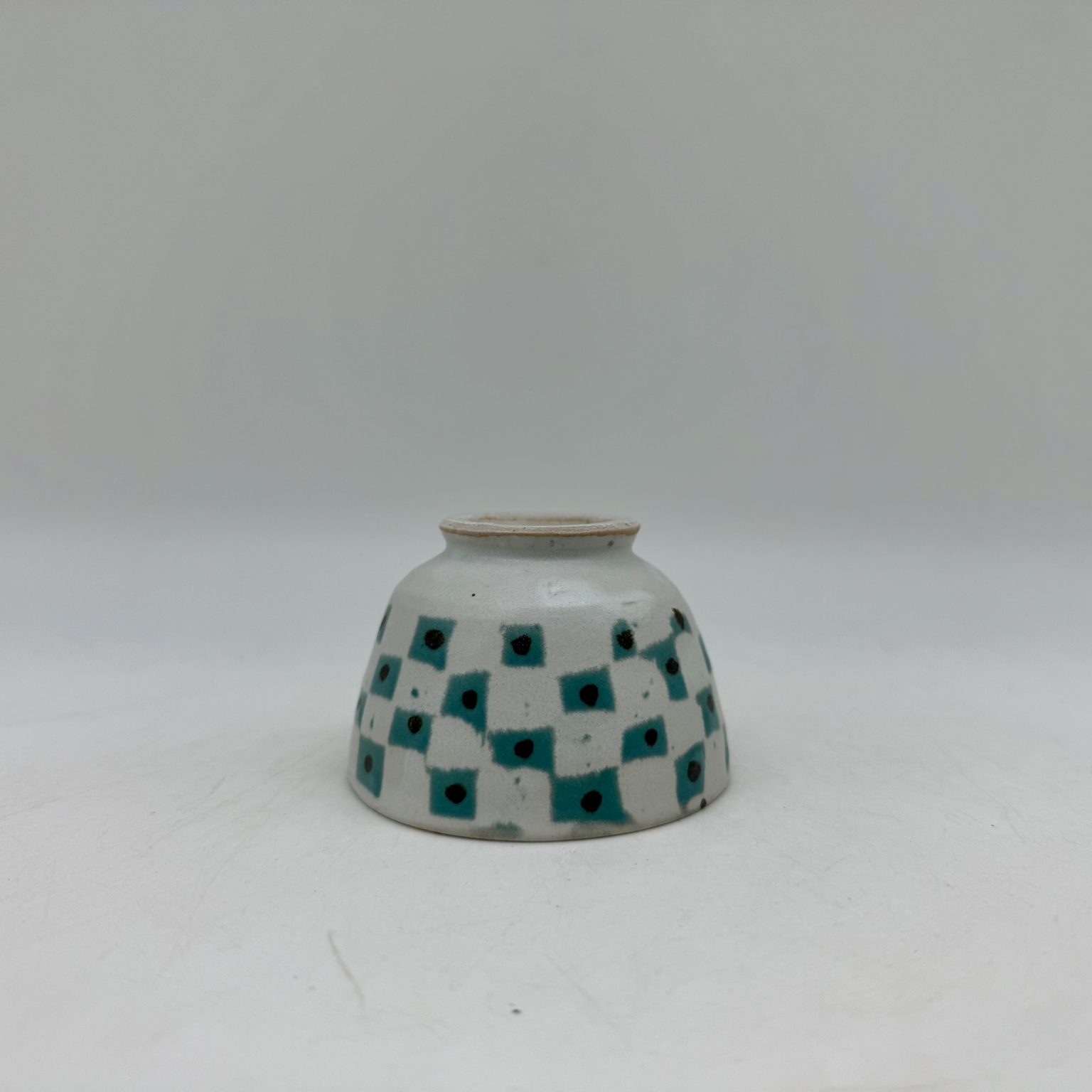 This mini porcelain bowl was hand-thrown by Margo Brown in Buffalo, Wyoming. Height: 2″  Diameter: 3″ Color: White, Turquoise, Black Dishwasher safe.