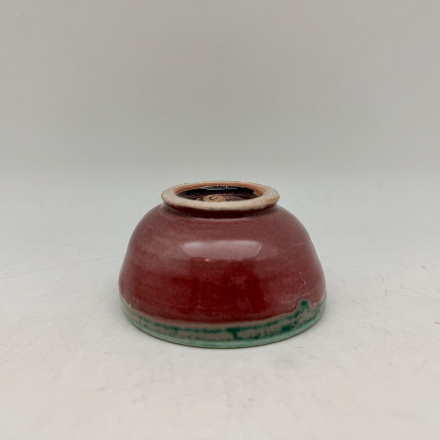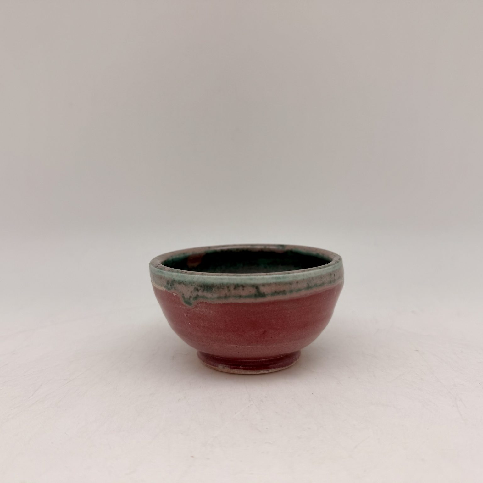 This mini porcelain bowl was hand-thrown by Margo Brown in Buffalo, Wyoming. Height: 1.75″ Diameter: 3.25″ Color: Red, Green Dishwasher safe.