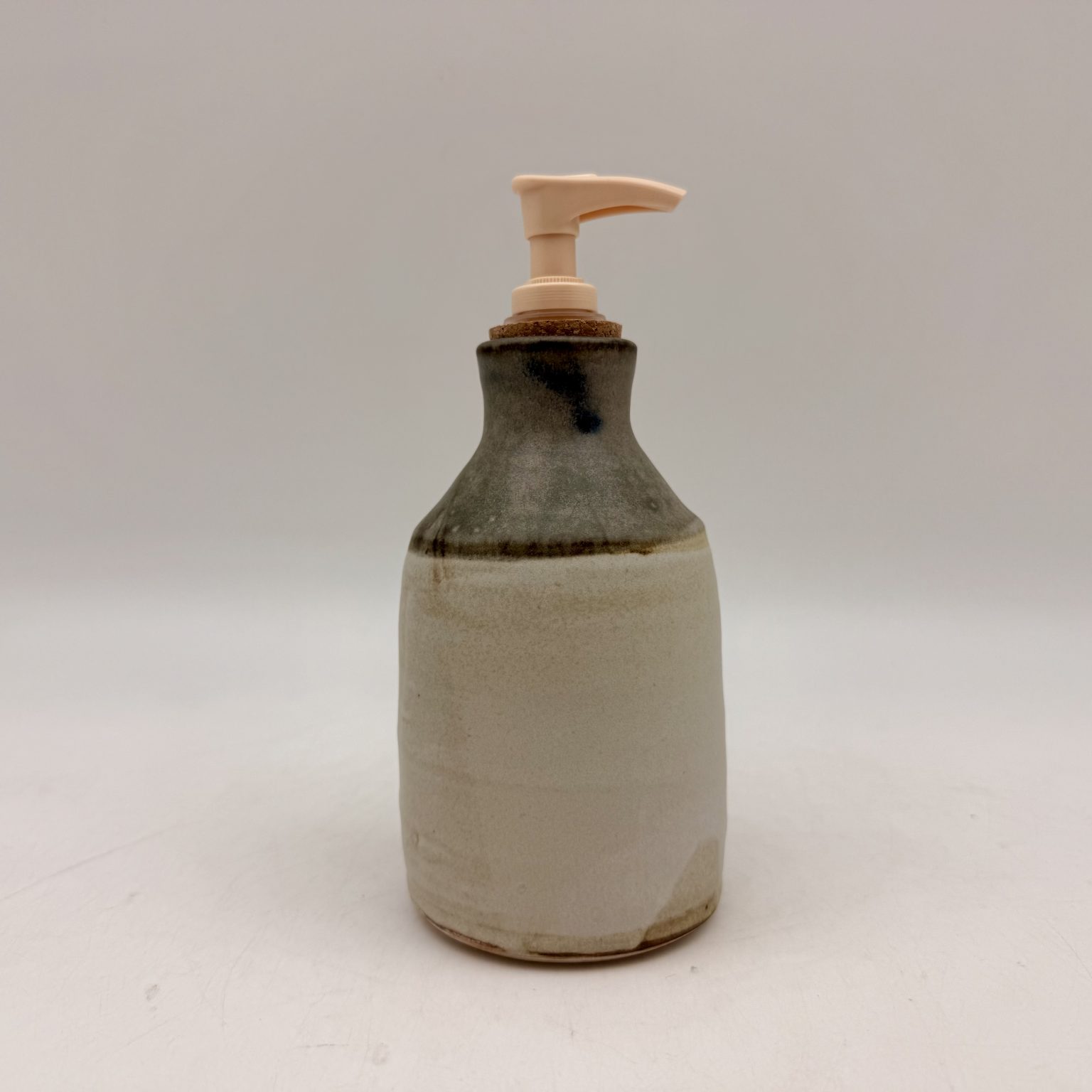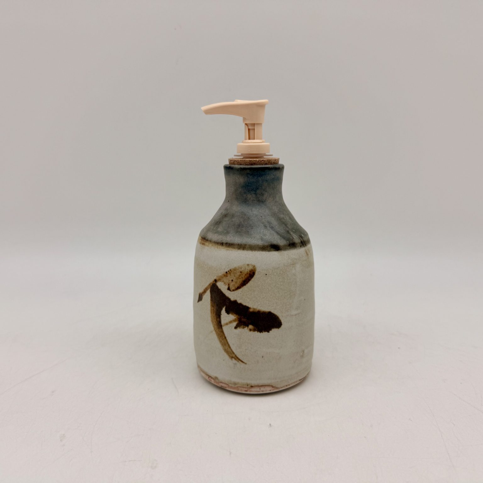 This porcelain soap dispenser was handmade by Margo Brown in Buffalo, Wyoming.