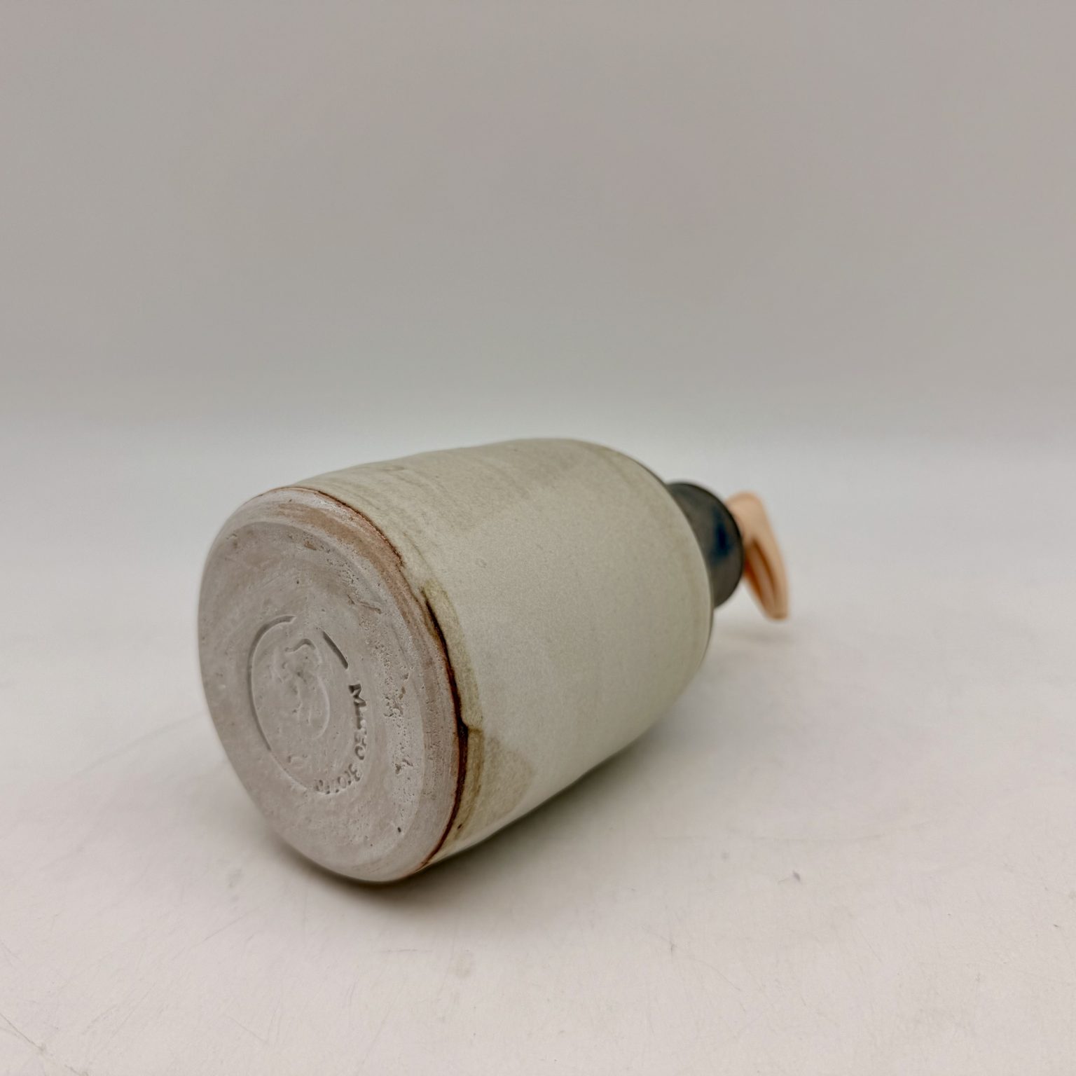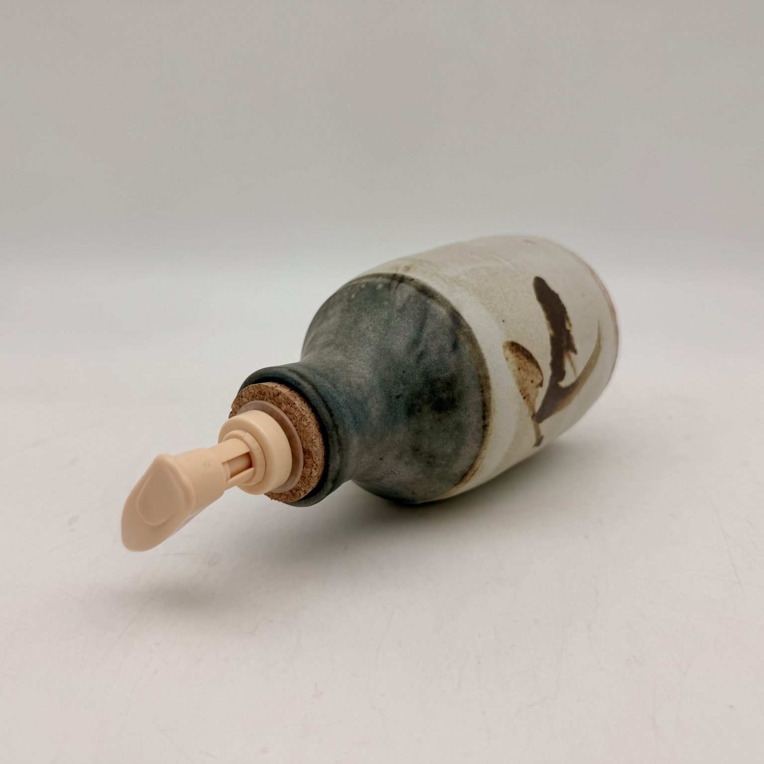 This porcelain soap dispenser was handmade by Margo Brown in Buffalo, Wyoming. Height: 7″  Diameter: 3″ Color:  Cream, Brown, Cobalt Dishwasher safe.