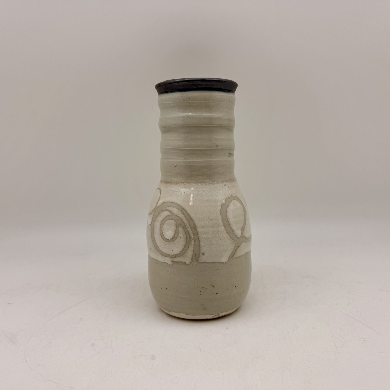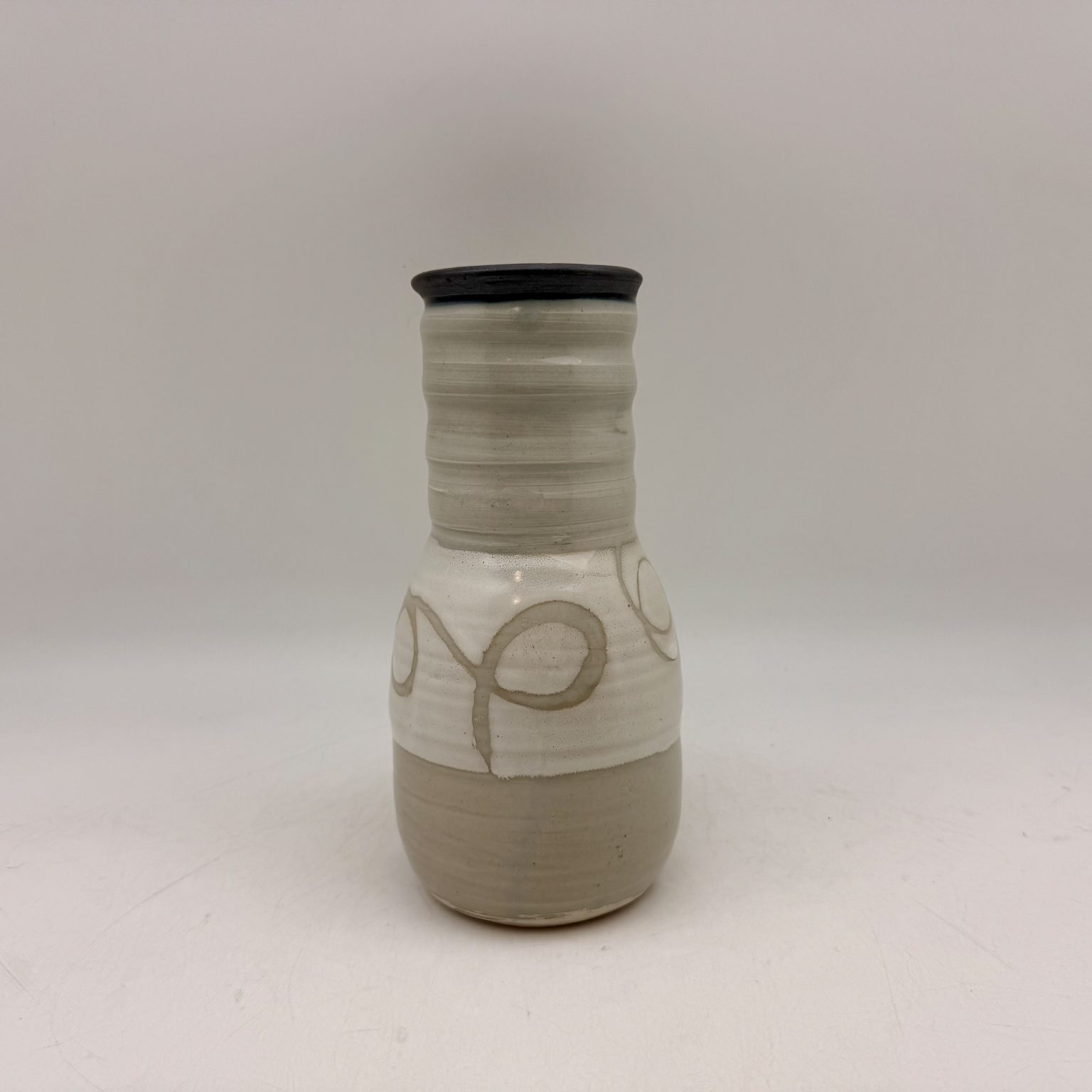 This porcelain vase was hand-thrown by Margo Brown in Buffalo, Wyoming. Height: 8.75″ Diameter: 3″ Color: Celadon, Tan, Cream, Black Dishwasher safe.
