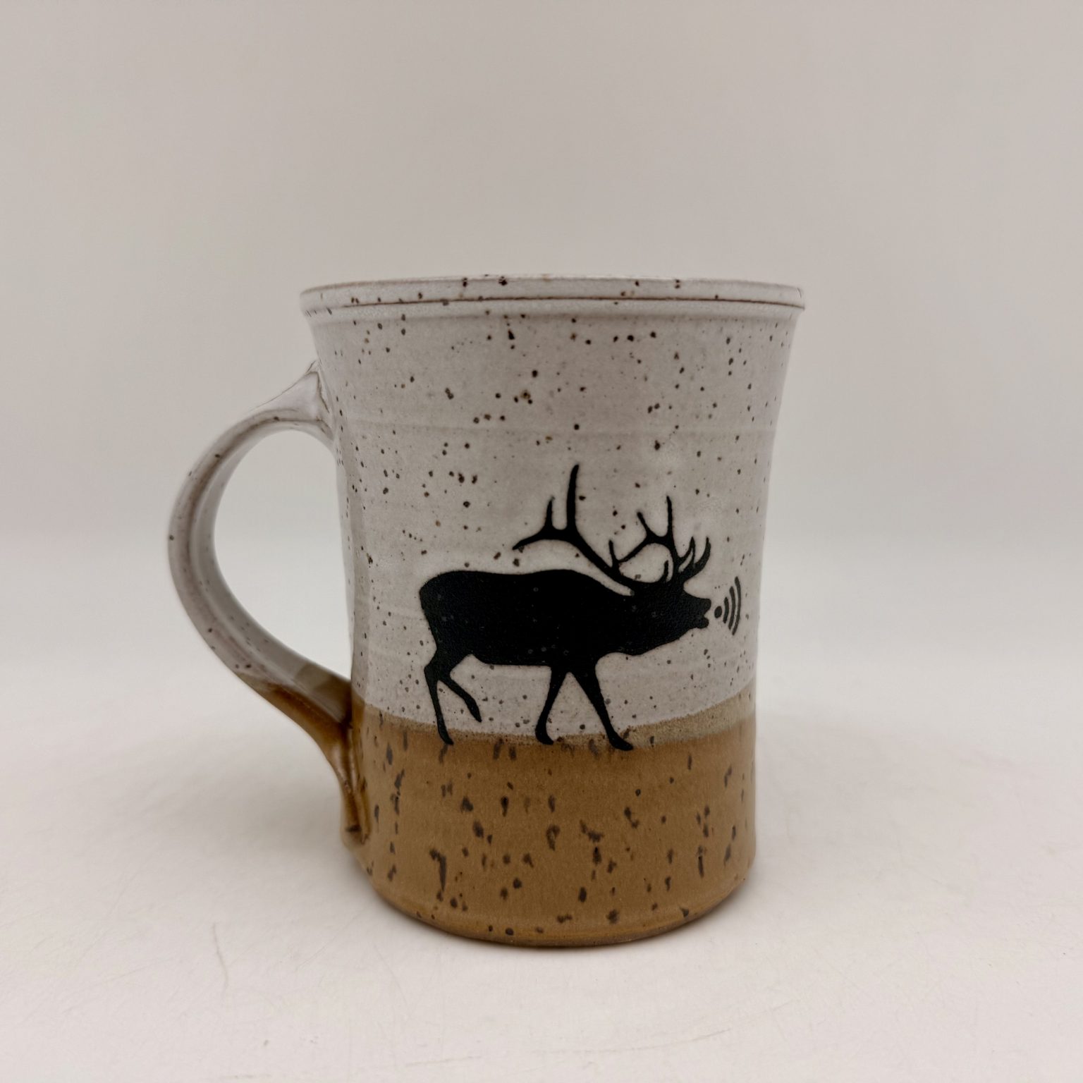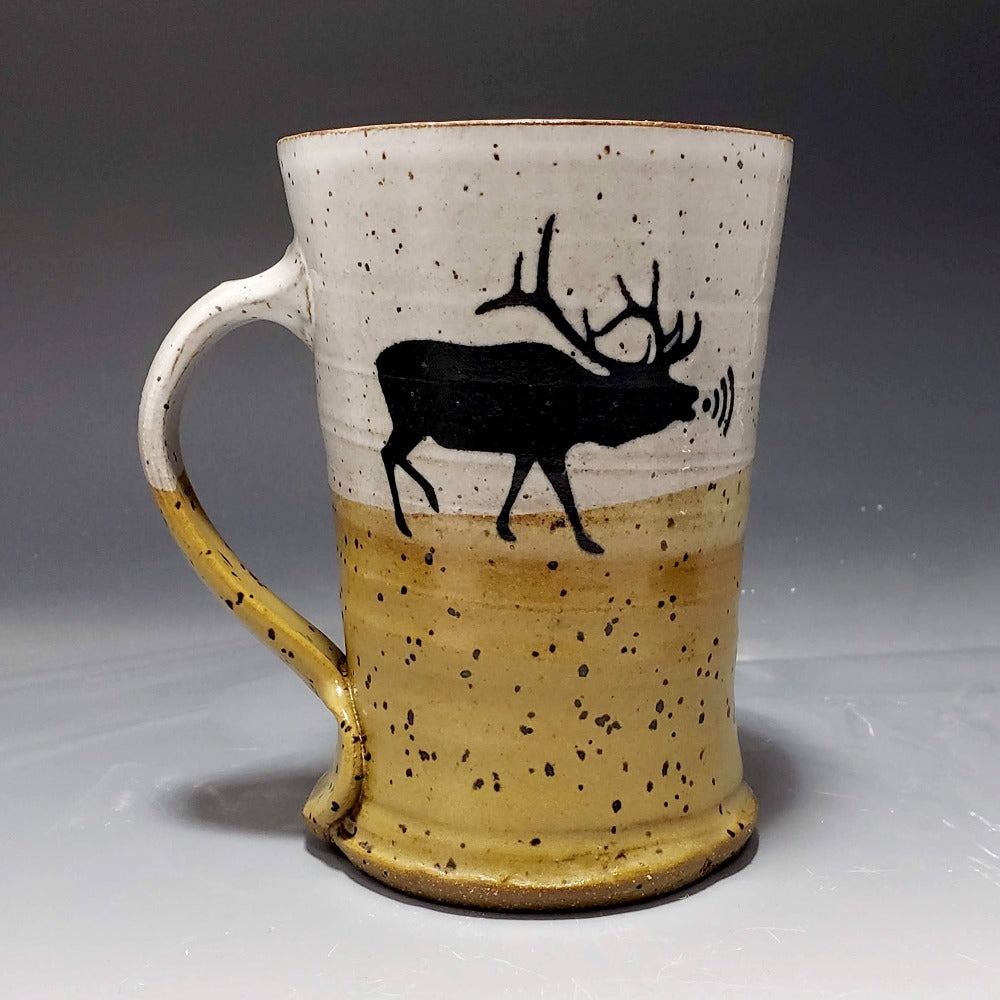 Elk, the first to use WIFI. Height: 4″ Width From Handle: 4.5″ Diameter: 3.75″ Standard 15 oz. coffee mug, give or take an ounce or two as each mug is individually thrown on a potter’s wheel. The measurements and color of each mug may vary slightly.